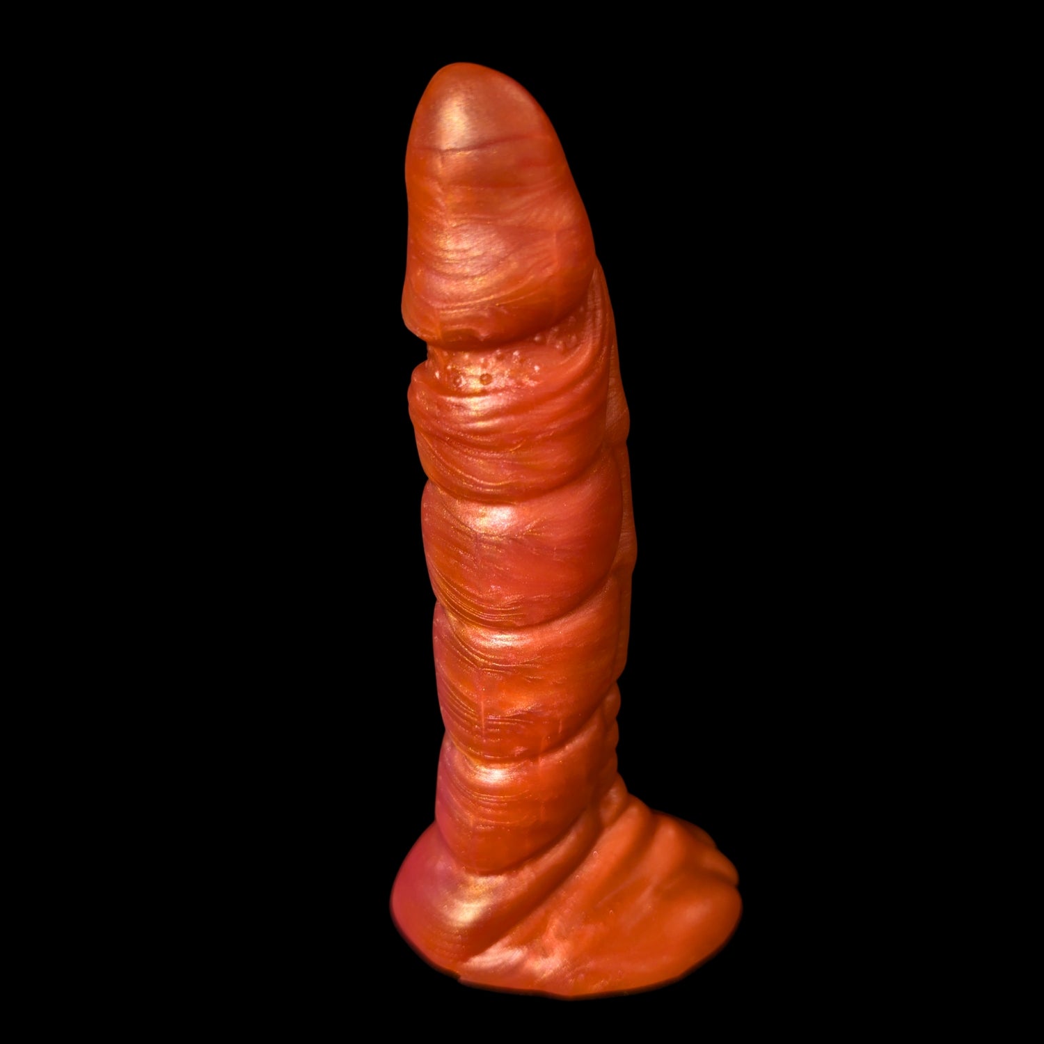 This is a premade item. You will receive the exact dildo pictured. It is a Small size Kezax the Dark Wizard, Blend style in Kreature Orange and Bubblegum Pink, in Classic firmness.